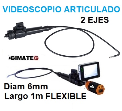 Videoscopio ARTICULADO 2 EJES= 2x110º , sonda flexible 6mm Largo 1 metro , graba Foto y Video en tarjeta mSD , TFT Color 5" via RADIO ,Maletin aluminio ,