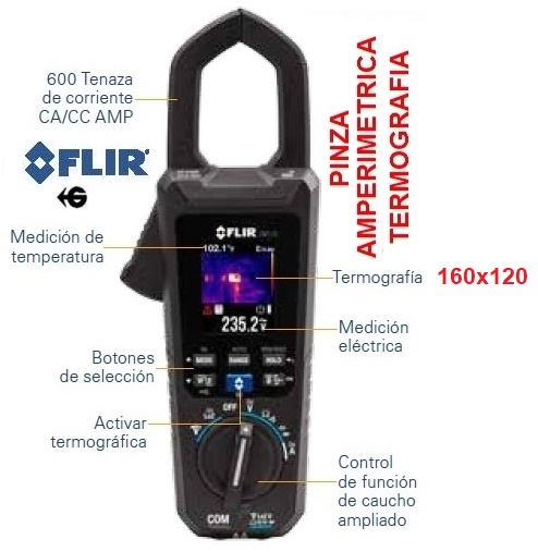 Pinza amperimetrica Flir CM-275 con FOTO camara TERMOGRAFICA 160x120 integrada, ideal PARA borneros.,Puntero Laser ,2xLEDs ,CAT IV 600V ,CAT III 1000V , True RMS